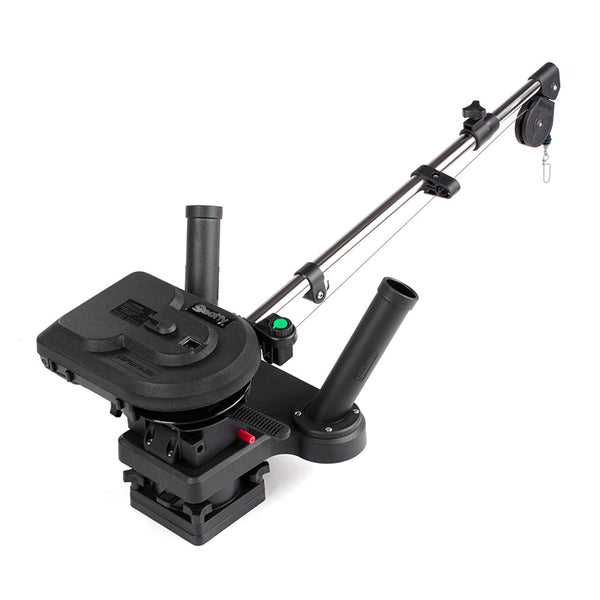 The top choice of charter captains. This unit gives the versatility of a telescoping boom with the Dual Rod Holder option and Swivel Pedestal Mount.
