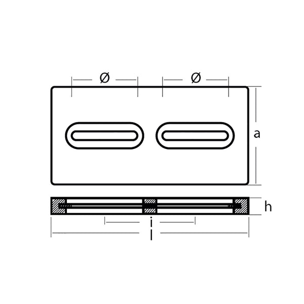 This rectangular plate anode is designed to be installed on the hull of a boat. The slotted holes in the plate prevent the need for drilling and give divers the ability to install them underwater. Much like other anodes, this anode works by absorbing corrosion and preventing it from reaching other metallic surfaces of a boat.