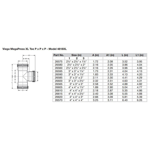 MegaPress 2-1/2" Carbon Steel Tee w/FKM - Triple Press Connection - Smart Connect Technology