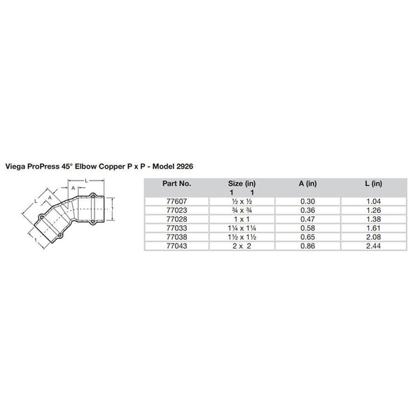 Viega ProPress 1-1/4" - 45 Copper Elbow - Double Press Connection - Smart Connect Technology [77033]