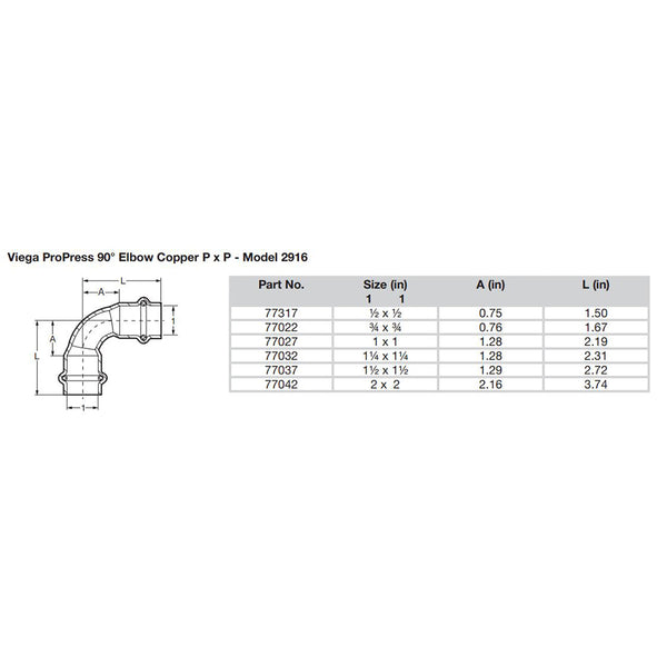 ProPress 1/2" - 90° Copper Elbow - Double Press Connection - Smart Connect Technology