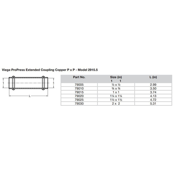 ProPress 2" Extended Coupling without Stop - Double Press Connection - Smart Connect Technology